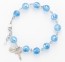 10mm Round Light Sapphire Frosted Rosary Bracelet with a Sterling Silver Crucifx, Miraculous Medal with Rhodium Plated Brass Findings-Bxd