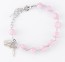 8mm Venetian Glass Pink & White Flower Bead Rhodium Plated Brass Rosary Bracelet w/Sterling Silver Crucifix and Miraculous Medal-Bxd
