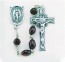 All Sterling Silver Oval Black Cocoa Rosary with Miraculous Center and Crucifix Boxed