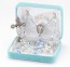 7mm Finest Crystal Rosary with 8mm Blue Glass Flower O.F. Beads, w/Sterling Silver Ctr & Cfx-(80/161)-Bxd