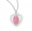 • Enameled oval shaped double sided pendant set inside a pierced heart.